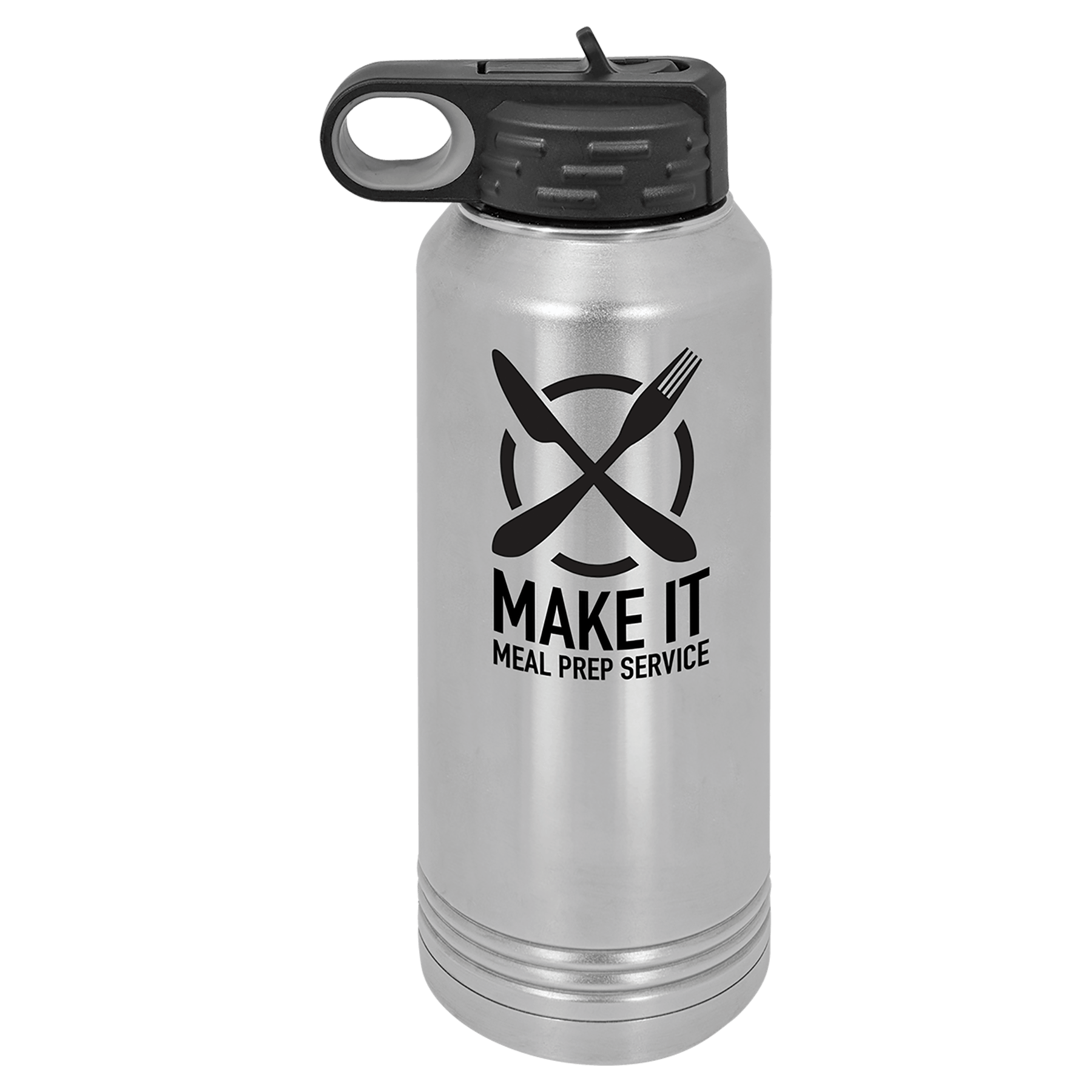 Stylish, durable, and built for active days, this 32 oz. insulated stainless steel water bottle delivers reliable performance in a convenient, easy-to-carry design. Crafted from premium 18/8 stainless steel (18% chromium, 8% nickel), it features double-wall, vacuum-sealed insulation to keep beverages cold for up to 24 hours or hot for up to 6 hours.