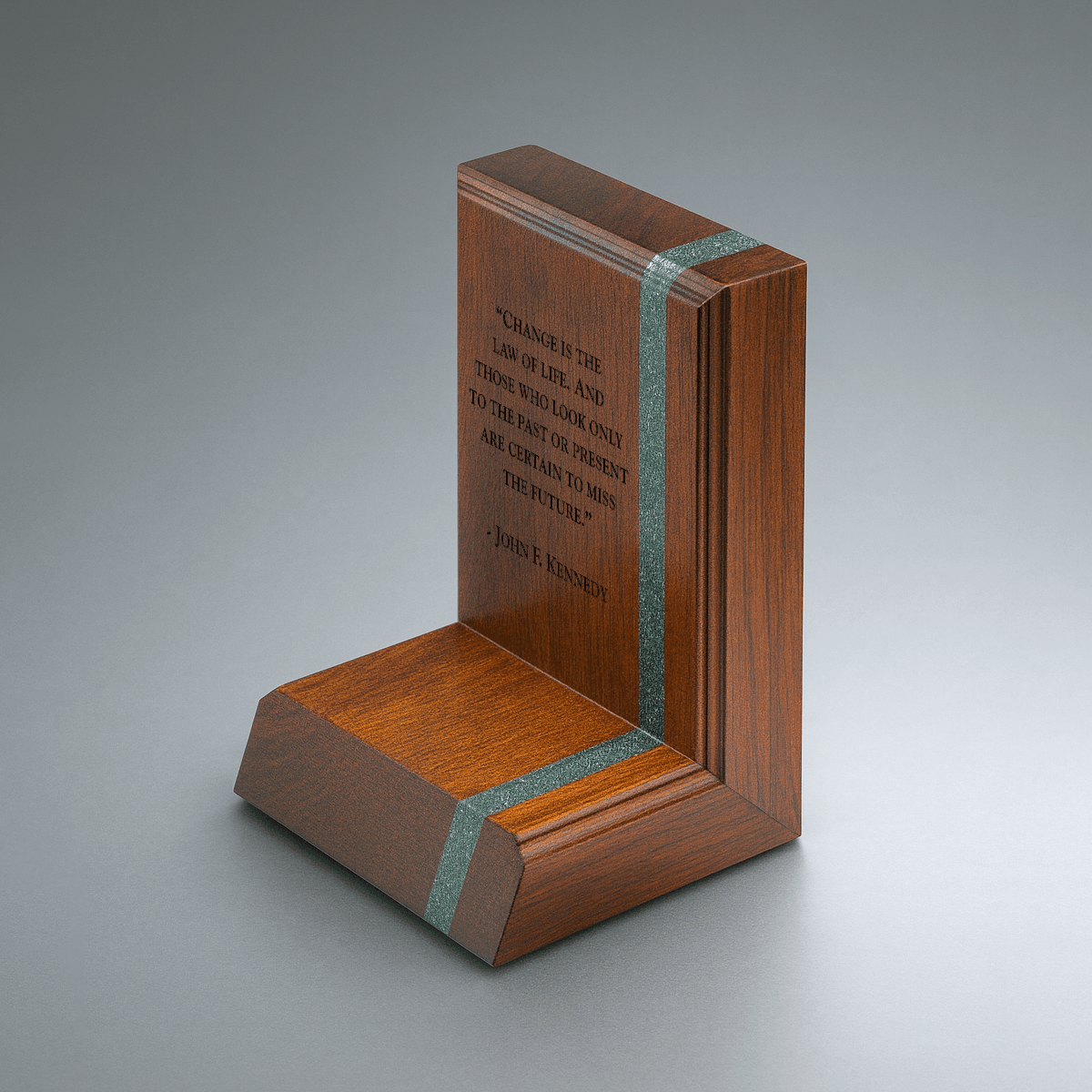 Brilliantly accented with a trendy sash of rich Avonite®, the Lane Award Bookends w/ Sherwood Green Avonite® are an exquisite gem, providing an elegant dash of style and practical functionality. These charming pillars of sophistication bring stability and order to any bookshelf. Constructed from the finest materials, the Lane Award Bookends w/ Sherwood Green Avonite® stand at 5” x 7” x 4” yielding stylish and secure support for your featured literature. Give your shelves the finishing touch of elegance with the chic design of the wonderfully refined Bookends w/ Sherwood Green Avonite® by Lane Award.