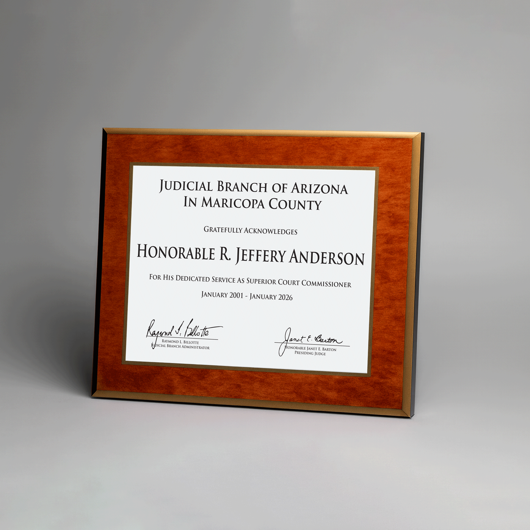 A prestigious emblem of long-term dedication and ultimate accomplishment, the Custom Laminated Certificate/Document Plaque is the perfect expression of recognition for any epic milestone. Its thick, luxuriant, wood border boldly frames the priceless credentials at the core of the occasion, valiantly showcasing the document behind a crystal-clear acrylic finish. This masterpiece is available in an array of sizes, making it an excellent choice for a diverse variety of unique or official certificates. Immortalize your grand achievement with the richly esteemed Custom Laminated Certificate/Document Plaque by Lane Award.