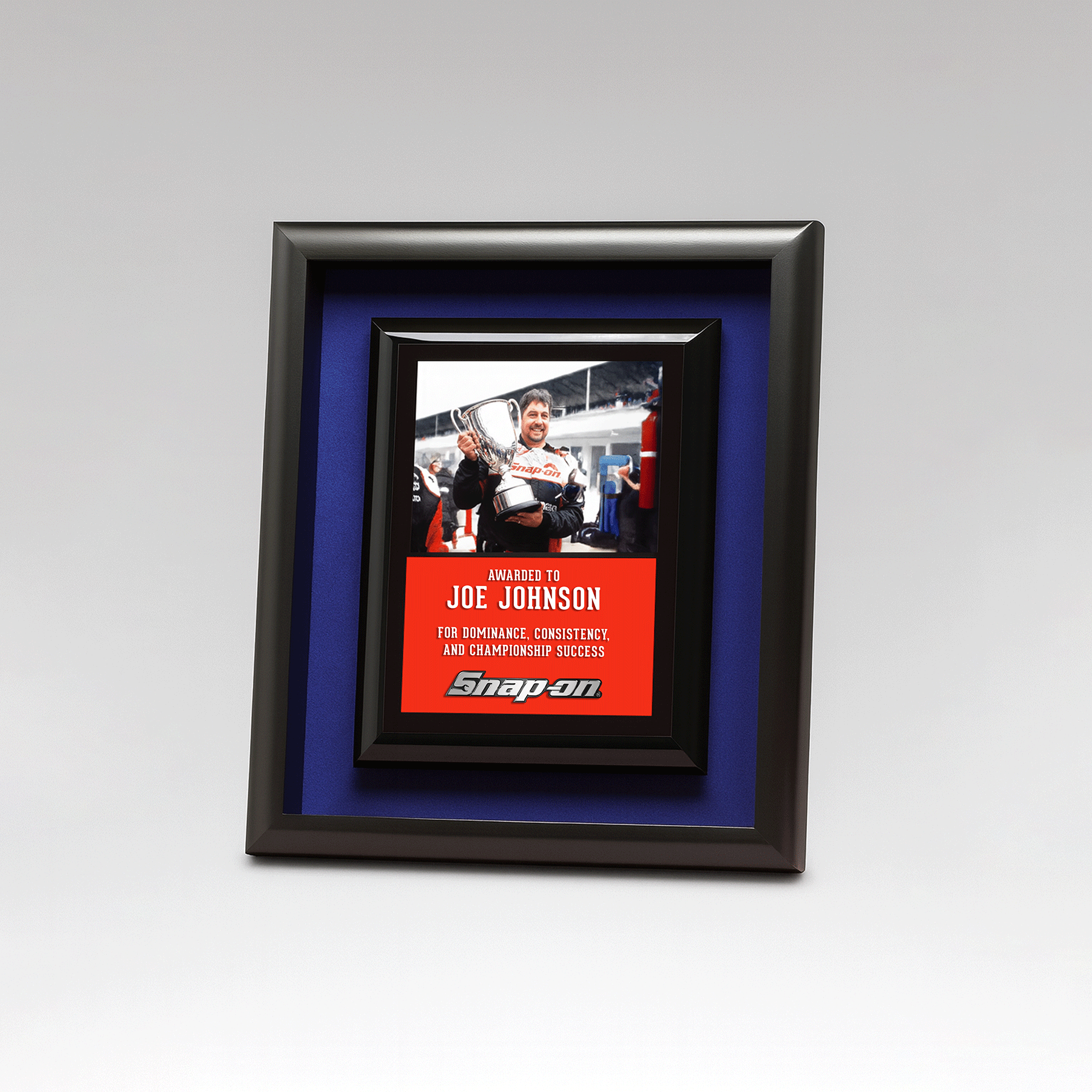 Constructed in a stunning, deep-set design, the Full Color Gallery Frame by Lane Award features a vibrant, personalized plaque with a pristine, polished ebony body, beautifully showcased in a dramatic shadowbox setting. Offset by a fine felt backdrop in your choice of black, burgundy, green, red, or royal blue, this gorgeous showpiece is available in three sizes, and is the perfect reverberation of your most remarkable achievements. Please call for pricing 1-800-843-2581.